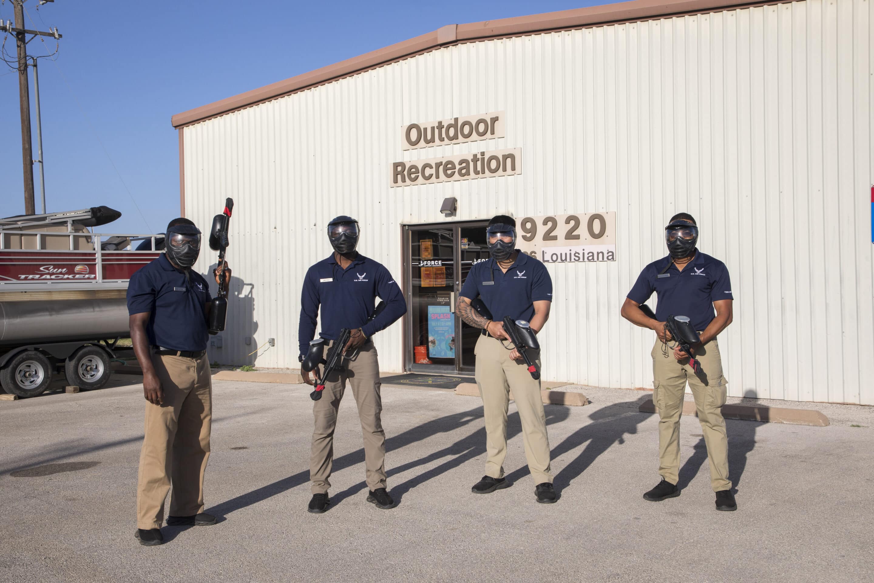 Our large paintball field is loaded with old military vehicles, trailers, small buildings, and obstacles for all skill levels. We have a sheltered “safe area” with picnic tables for spectators. Great for dorm, group fun, squadron parties, and fundraisers!